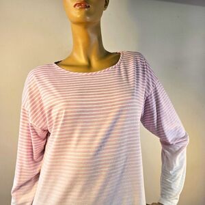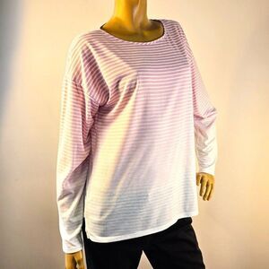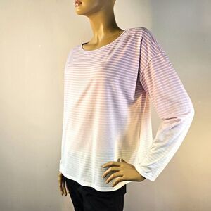 VINCE CAMUTO Womens Pink Stripe Ombre Long Sleeve Top Tee Boat Neck Size Large