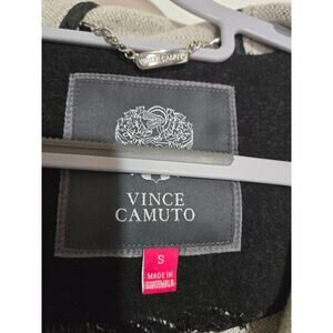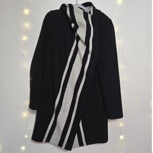 VINCE CAMUTO Wool Blend Striped Asymmetrical Hooded Long Coat Small Black Gray
