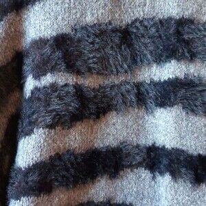 Zebra animal print. Front pockets. Open front, long line. Very warm!! Zebra stripes have a fun furry texture. Preowned in excellent condition- like new!