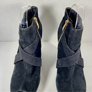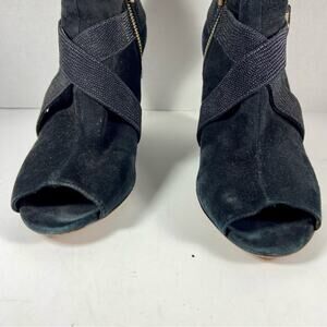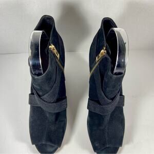 FEATURES/ACCENTS: peep toe black suede gold hardware