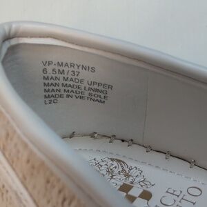 Vince Camuto Marynis Loafer Slip on Shoes Women’s Size 6 1/2 - Raffia bohemian boho summer shoe Natural light cream woven, textile upper, gold tone hardware, espadrille bottom, Memory foam, round square mac toe, so comfortable Approximately .075” platform, 1.25” block heal. Brand NEW, Never Worn, NWOT! Casual but professional, perfect for summer, work, vacation or travel
