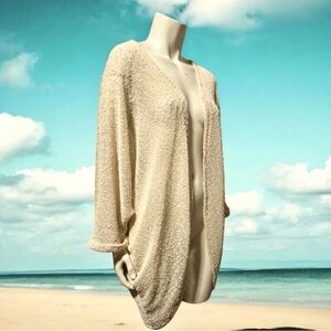 VINCE CAMUTO ivory nubby mesh cocoon wrap swimsuit beach cover up cardigan O/S