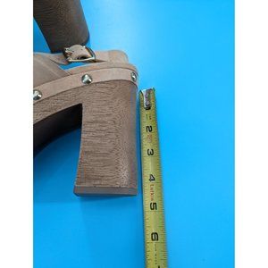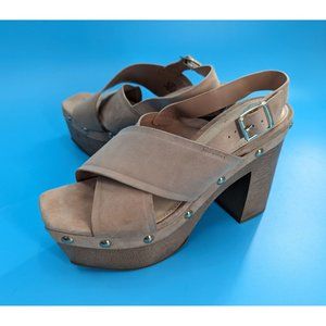 70's inspired fashion is everywhere. Grab these slingback platform sandals to complement your favorite prairie shirt and fringed jacket. They are constructed with criss cross straps, square toe, and adjustable back strap. Pyramid studs punctuate the midsole for added flair.