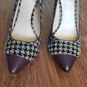VINCE CAMUTO sz 9 STILETTO PORSPERA, BROWN HOUNDSTOOTH