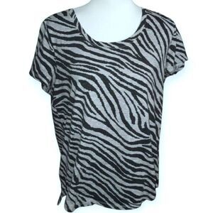 VINCE CAMUTO GRAY & BLACK ANIMAL-PRINT TEE-SHIRT SZ.L EUC.