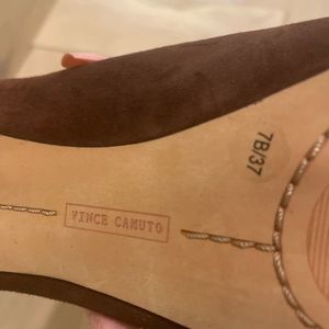 VINCE CAMUTO SUEDE 'JERRELL' HEELED BOOTIE IN CAROB SIZE 7