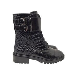 The most effortlessly cool moto boots that are just a comfortable as they are easy on the eyes.Crocodile embossed cow leather upper. Zipper Closure. Synthetic Lining. Rubber Outsole. Approx. 1.6" Heel Height. Approx. 6.7" Shaft Height. Approx. 9.7" Shaft. circumference. Imported.