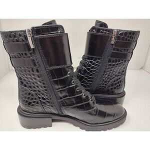 VINCE CAMUTO WOMENS FAWDRY DOUBLE BUCKLE C BLACK GLAZED CROC MOTO BOOTS NIB 5M