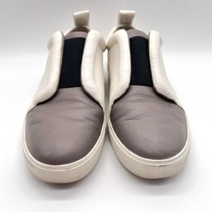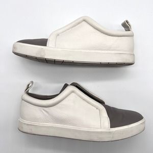 VINCE Caden Sneaker Womens 8 White Gray Leather Slip on Low Top Colorblock