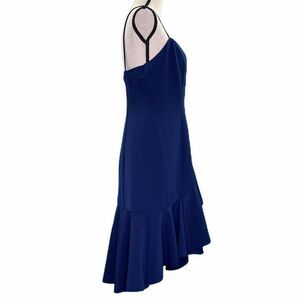 Vince Camuto Navy Asymmetrical Ruffle Dress
