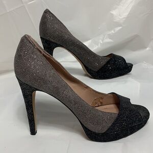Vince Camuto Timmons Gray Black Sparkle Open Toe Heel Size 8.5B