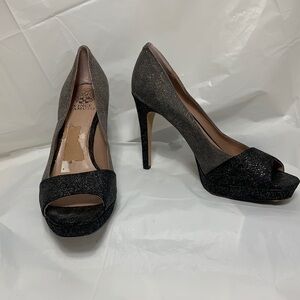 VINCE Camuto Timmons Gray Black Sparkle Open Toe Heel Size 8.5B