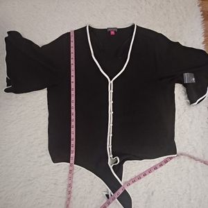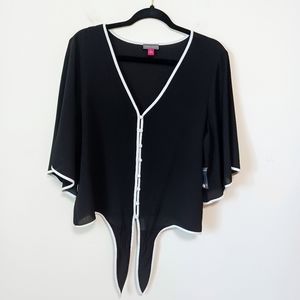 VINCE Camuto Tipped V Neck Blouson Top Sz PL NWOT