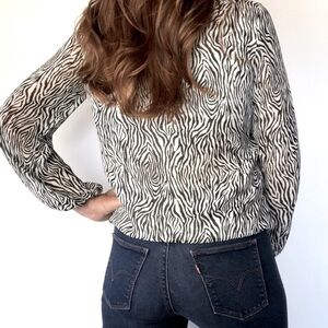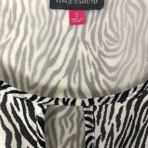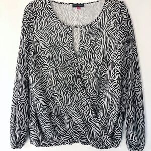 VINCE Camuto Zebra animal print keyhole Faux wrap balloon Sleeves top blouse