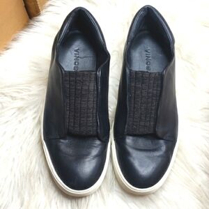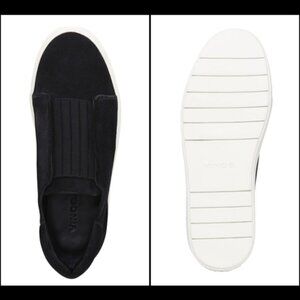 Ribbed paneling at the vamp adds cozy texture to this casual sneaker while serving as a reminder of Vince's knitwear roots.