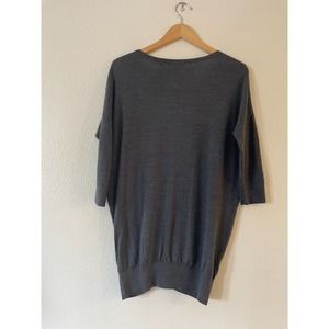 VINCE Round Neck Lightweight Cashmere Merino Wool Blend Ruched Front Pullover Sweater