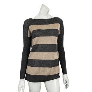 VINCE Cashmere Metallic Striped Pullover Sweater gray stripe sz Small
