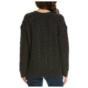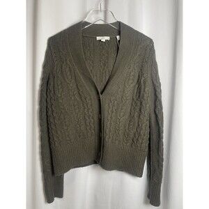 VINCE Cashmere Wool Interlocking Cable Cardigan Sweater In Black Leaf Sz L New