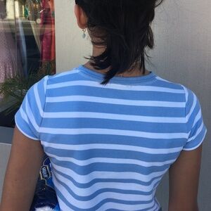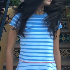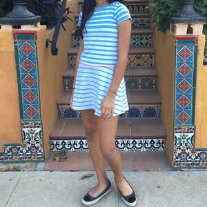 VINCE Cerulean Blue & White Striped Drop Waist S/S Mini Dress Girl Size Medium