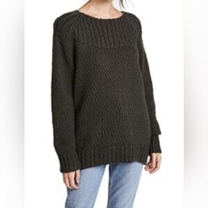 VINCE Crew Neck Wool Cashmere Blend Grey Chunky Knit Oversized Sweater