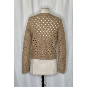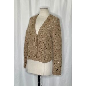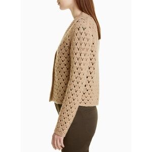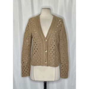 VINCE Crochet Cardigan Sweater Cashmere Wool Amber Light Cropped Knitwear Small