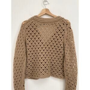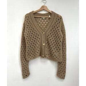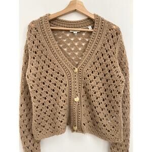 VINCE. Crochet Open Knit Wool Cashmere Luxury Cardigan Amber Light - Medium