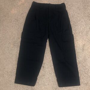 Oversized side pockets detail this reimagined cargo pant that banishes bulk for streamlined silhouette. Refined utilitarian style in cotton twill w/ cropped cuffed wide leg. Flattering pleats. Zip fly w/ hook-&-bar closure. Front slant pockets; cargo flap-patch pockets; back welt pockets. Midweight. 100% cotton. Size 0. Approx 22.5" inseam; 13” waist; 10.5" rise. Great pre-owned condition. No stains/flaws. Smoke/pet free home. Offers welcome. Bundle & save. Ship same/next day. Packaged w/ care.