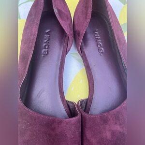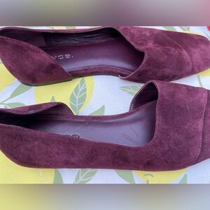 condition minimal wear on bottoms features wine colored suede slip on flats, leather bottom