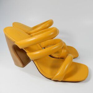 VINCE Dara Tubular Three-band Slide Sandals 8.5 Papaya Yellow Leather NEW $330
