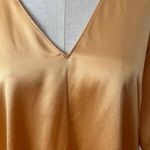 VINCE Double V-Neck Silk Top in Gold Size XL