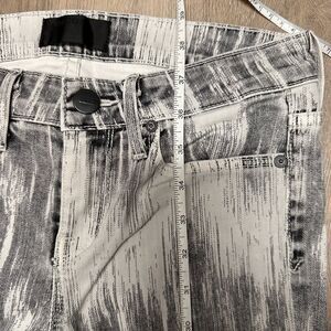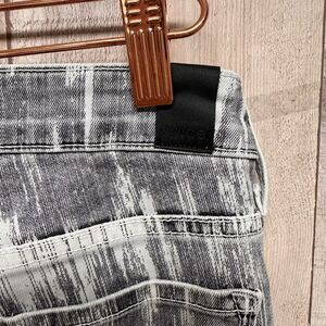VINCE Dylan Coated beat down brushstroke print gray and white skinny jeans.