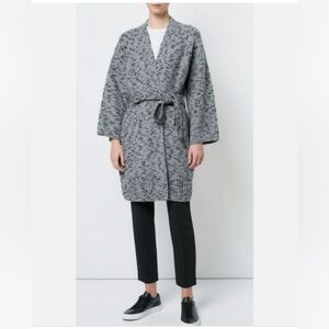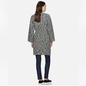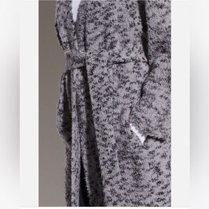 Wintry and Cozy Vince cardi: Grey/black marled wool and cashmere blend belted/patterned cardigan from Vince featuring an open front, a belted waist, long sleeves, ribbed cuffs, a straight hem and a ribbed hem.