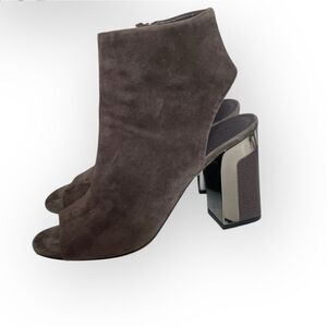 VINCE Fenmore Suede Peep Toe Booties Brown Suede Women's Ankle Boots Heels 9