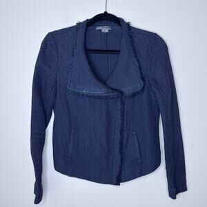 VINCE Frayed Edge Moto Jacket Women's Medium Navy Full Zip Cotton Textured