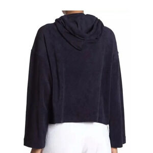 VINCE French Terry Hoodie Womens Small Navy Wide Sleeve Blue Sweatshirt 1280