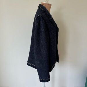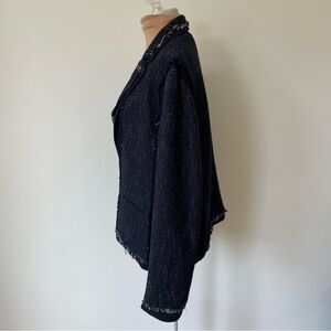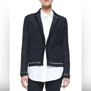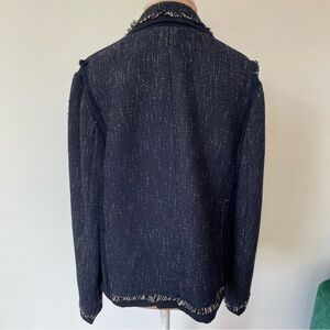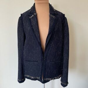 VINCE Fringed Navy Blue Twill Paneled Tweed Cotton Blend Blazer Jacket EUC Sz L
