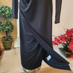 Go from your work day to weekend in this long-sleeve midi dress cut from a lightweight knit with gathered side pleats.