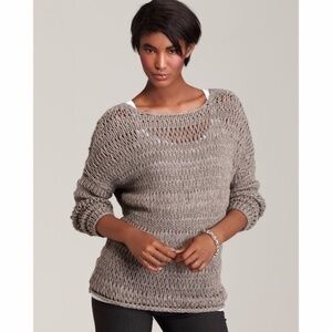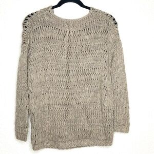 VINCE Gray Chunky Open Loose Knit Boatneck Pullover Long Sleeve Sweater Sz Small