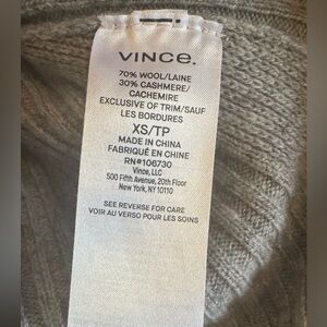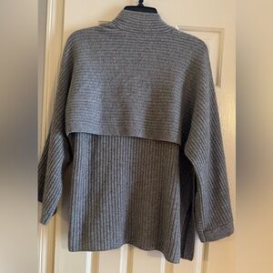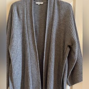 VINCE Gray Ribbed Wool & Cashmere Split Panel Cardigan