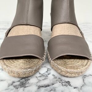 VINCE Gray Taupe Velcro Peep Toe Espadrille Wedge Sandals Size 8