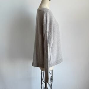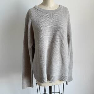 Details: VINCE Gray Wool Yak Blend Long Sleeve Waffle Knit Sweater with drop shoulders, crew neck, and ribbed cuffs & hem.