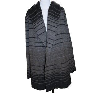 VINCE Gray and Black charcoal striped hooded open front cardigan sweater Alpaca Wool Yak Cashmere women's size Small. Excellent gently worn pre owned condition. Ready to wear, great career professional back of seat office sweater. Measures 22.5" chest, 19.5" shoulders and 32" length. Fast professional shipping. sb2 8/25/2025