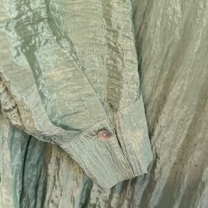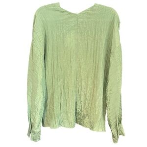 VINCE Green Crinkle Long Sleeve Satin Blouse Size Large NWT