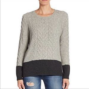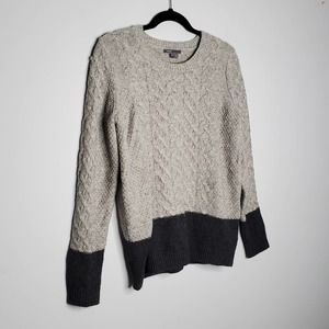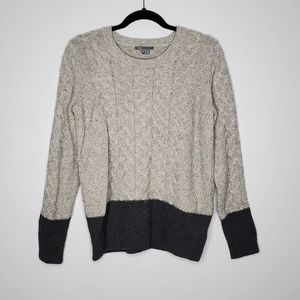 VINCE Grey Black Colorblock Cable Knit Crewneck Knit Sweater Sz S