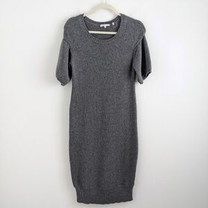 VINCE Grey Short Sleeve Sweater Dress Shift Narrow Ribbed Hem M