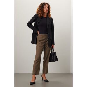 Brown plaid cotton (34% Polyester 33% Viscose 32% Wool 1% Elastane). Pants. Length 37.1waist 30 has elastic in back
