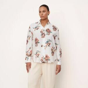 Cut with a relaxed fit, this classic, collared menswear-inspired silhouette is softened with a vibrant and feminine ikat floral motif. Wear it with trousers, skirts or use it to dress up your favorite denim.