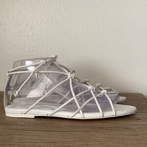 VINCE Kenna Leather Strappy Gladiator Knotted Leather Sandal Flats sz 6 US White