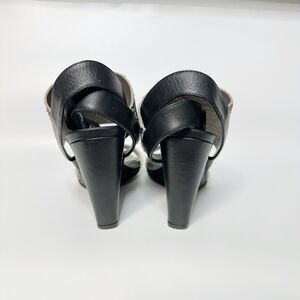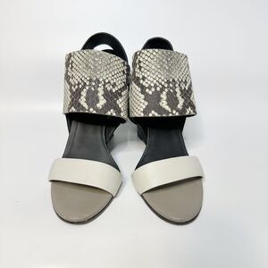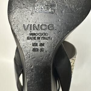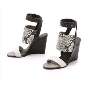 VINCE Kyra Snake Embossed Leather Wedge Sandals Black White Sz 8 39