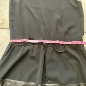 VINCE LEATHER CONTRAST BAND DRAWSTRING with Pockets WOMEN Black Dress Medium